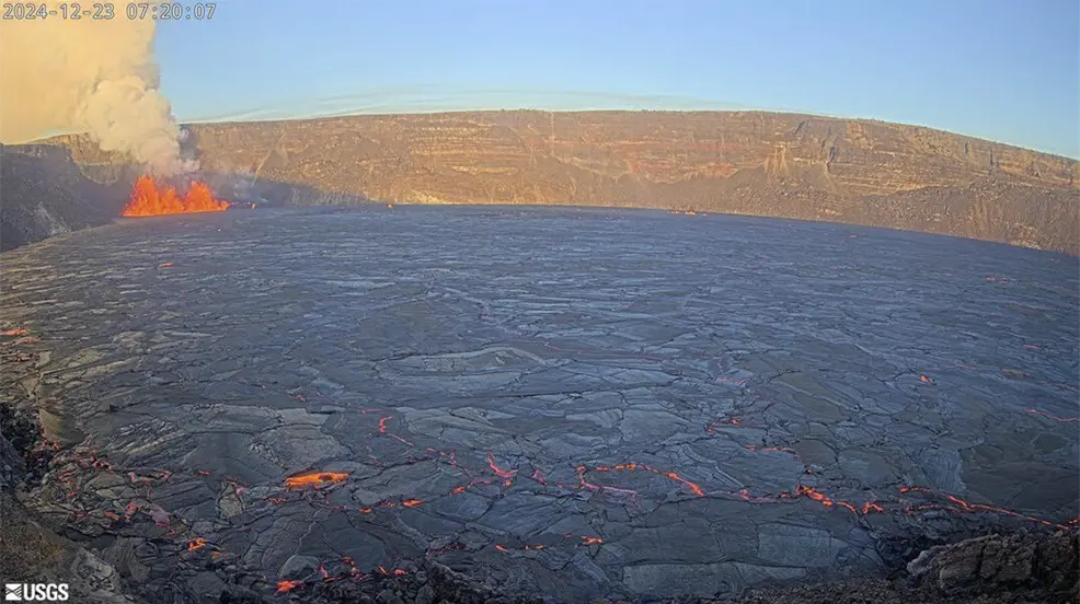 PARQUE NACIONAL DE LOS VOLCANES DE HAWAI.- El volcán Kilauea, uno de los más activos del mundo, volvió a hacer erupción este lunes, causando la aparición de fuentes de lava y burbujas incandescentes en la caldera de su cráter. Según el Observatorio Volcánico de Hawai, la actividad sísmica comenzó en la madrugada y rápidamente desencadenó la erupción.