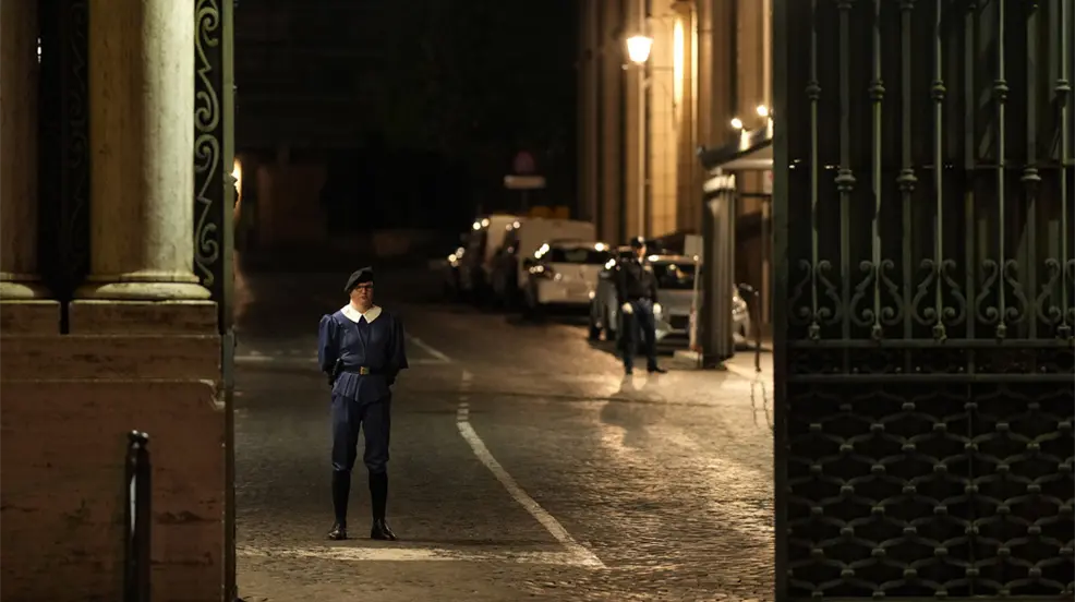 Se trata de una incursión inusual a la ciudad Estado, gran parte de la cual está restringida para el público en general, particularmente por la noche.El Palacio Apostólico, el cual alberga apartamentos papales, salas de recepción, los archivos del Vaticano y algunas oficinas, está resguardado las 24 horas del día por elementos de la Guardia Suiza y gendarmes que operan distintos puntos de revisión.