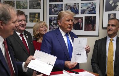 Trump registra su candidatura en Nueva Hampshire y se compara con Mandela