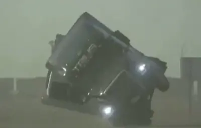 Los vientos extremos que están azotando al estado de Texas han provocado la volcadura de diferentes vehículos.