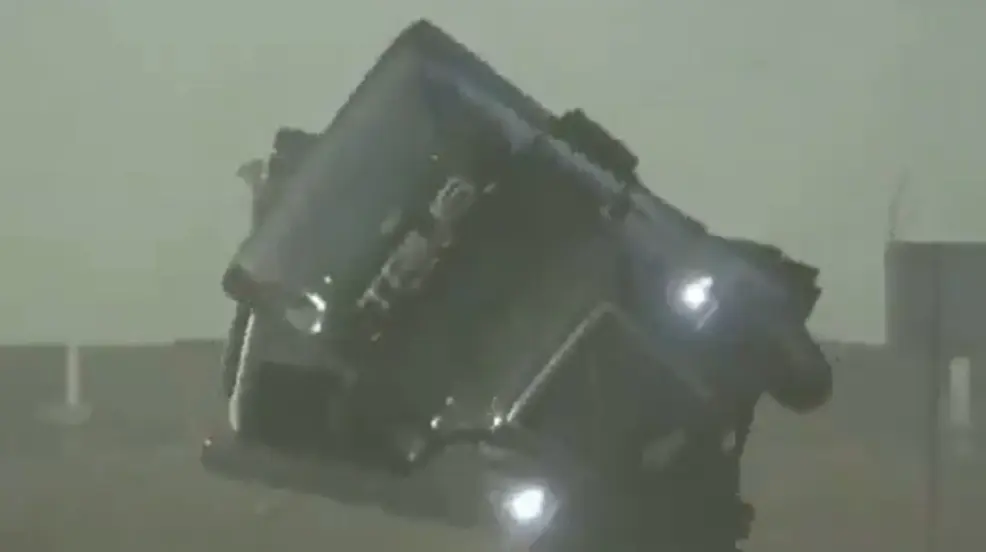 A través de redes sociales, han comenzado a circular diferentes videos en donde se muestra el momento exacto en el que diferentes vehículos pesados son derribados a consecuencia de los vientos extremos que están golpeando al estado de Texas.