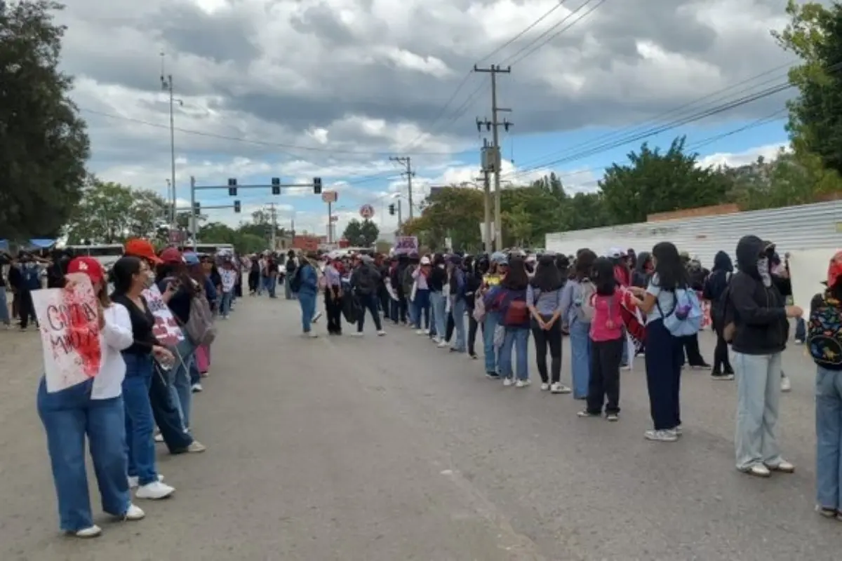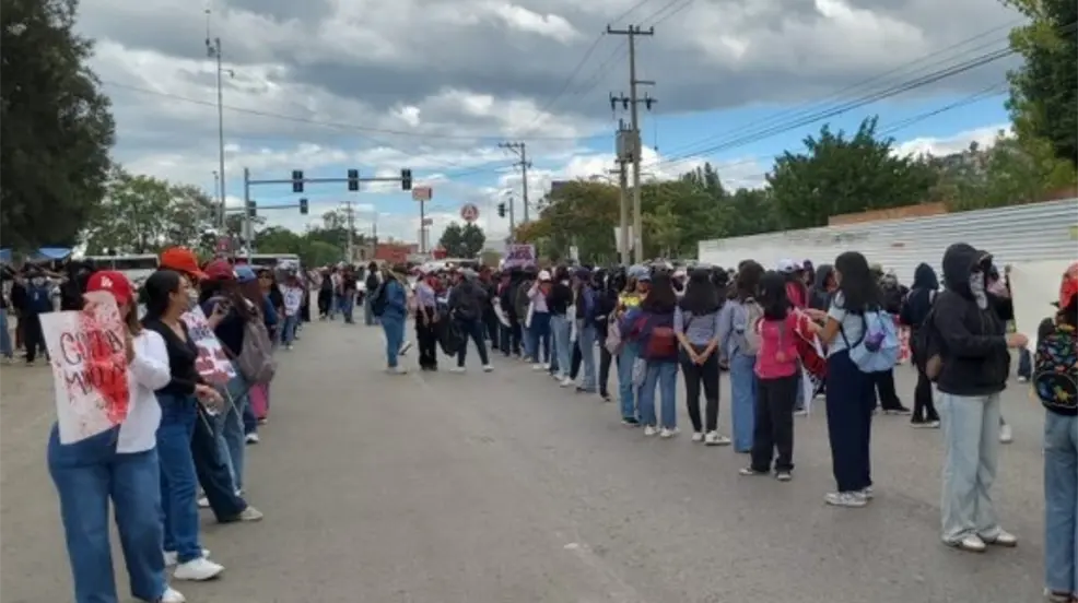 A las 14:00 horas, estudiantes del Centro Regional de Educación Normal de Oaxaca (CRENO), adheridas a la Coordinadora Estudiantil Normalista del Estado de Oaxaca (CENEO), iniciaron su marcha desde la Fuente de las Ocho Regiones con destino al primer cuadro de la capital.