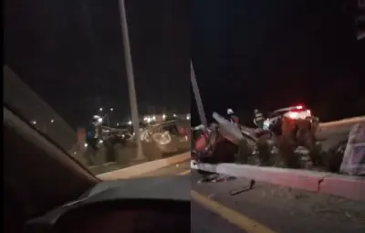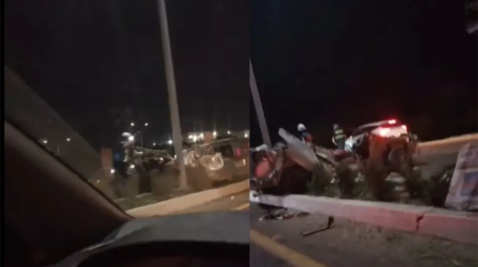 De acuerdo con los primeros reportes, una camioneta pick up y un sedán gris circulaban por la vía cuando ambos intentaron evitar una plataforma que maniobraba en reversa. La camioneta logró esquivar el obstáculo saliéndose del camino, sin embargo, el sedán quedó atrapado debajo de la plataforma, partiéndose en dos.