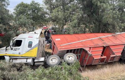 ECATEPEC, Estado de México.- Una tráiler que trasportaba más de 50 toneladas de cebada volcó en el kilómetro 11 de la autopista México-Pirámides, con dirección a la Ciudad de México.