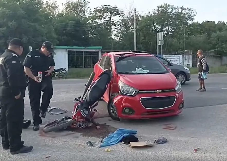 Se supo que los hechos ocurrieron cuando un vehículo Beat avanzaba hacia el oriente luego de bajar el puente en la salida a Tixkokob, cuyo guiador intentó dar vuelta en 'u', pero al hacerlo invadió el carril de al lado donde la moto tenía preferencia por lo que fue inevitable el accidente.