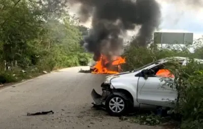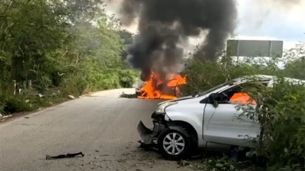 Choque deja un fallecido y un auto calcinado en la Mérida-Chetumal