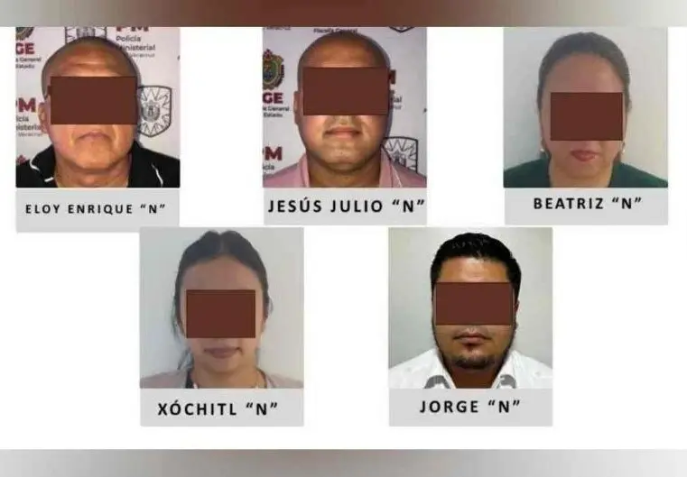 La Fiscalía General del Estado reportó las aprehensiones de Eloy Enrique "N", Jorge Said "N", Beatriz "N", Xóchitl "N" y Jesús Julio "N" y aseguró que, con respeto a sus derechos humanos y al debido proceso, serán puestos a disposición del juez de control y procedimiento penal oral, quien definirá sus situaciones jurídicas en próxima audiencia inicial, dentro del proceso penal 148/2024.