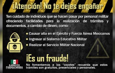 Alerta por Fraudes en tramites del Ejército Mexicano y la Fuerza Aérea Mexicana