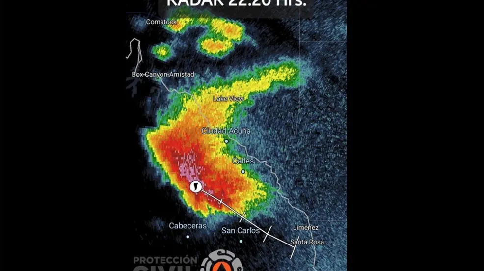 COAHUILA, México.- El radar meteorológico ha detectado la presencia de un vórtice de tornado en la zona de Calles y San Carlos en Acuña, Coahuila. Se insta a los residentes a buscar refugio de inmediato y tomar todas las precauciones necesarias para protegerse de la tormenta severa que se avecina.