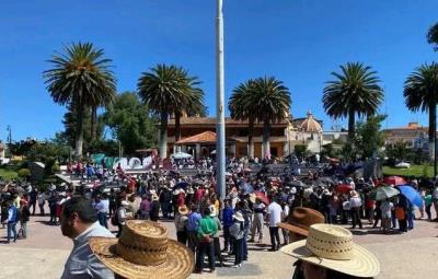 Los habitantes de Temoaya se reunieron en la plaza del municipio, esperan respuesta a su petición de abasto de agua, de lo contrario, amenazaron con volver a bloquear carreteras.
