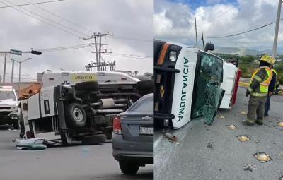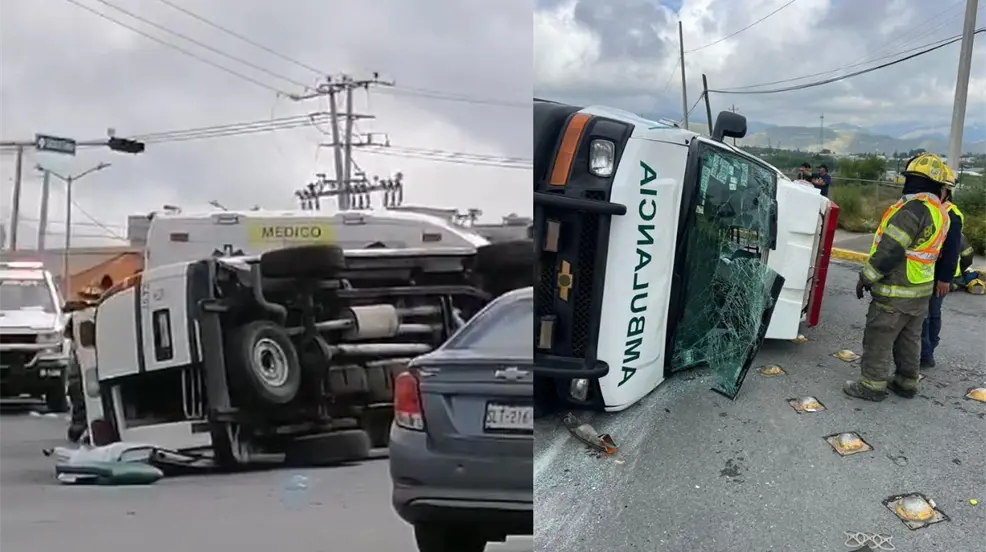 SALTILLO, Coahuila. Un accidente de tránsito dejó una ambulancia volcada tras chocar con un vehículo que no cedió el paso en el cruce del Boulevard Antonio Cárdenas y la Calzada Narro, al sur de Saltillo.