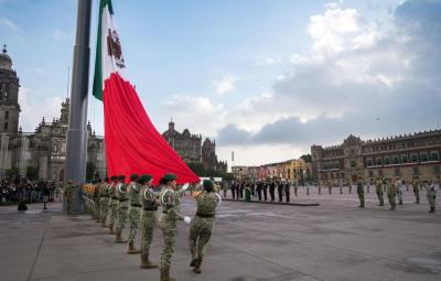 Entre los funcionarios presentes se encontraban los secretarios de la Defensa Nacional, Luis Cresencio Sandoval; de Marina, José Rafael Ojeda; y de Seguridad y Protección Ciudadana, Rosa Icela Rodríguez, además de otros representantes gubernamentales y de la Cruz Roja Mexicana. Durante el acto, la banda y el coro de la Secretaría de la Defensa Nacional interpretaron "Canto a la bandera", seguido por el toque militar "Silencio", en honor a los fallecidos en ambos sismos.