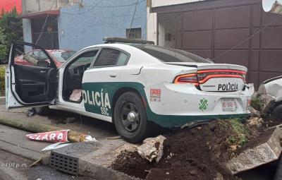 Versiones refieren que el conductor de una patrulla de la SSC se pasó el alto y golpeó a un vehículo, derribó un poste y dañó a dos autos más, no hay lesionados.