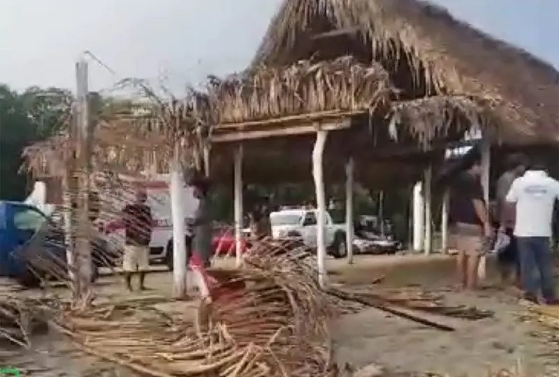 Un minitornado arrasó con mobiliario y palapas en Puerto Escondido en Oaxaca, lo que dejó daños materiales.