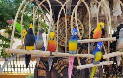 A los extranjeros les gustan los mascarones, eso es trabajo hecho a mano que siempre les agrada. Buscan llevarse un poquito de Yucatán, pero también tenemos artesanías de piedra, madera, también tenemos pulseras, collares, ropa típica, todo eso les gusta a los turistas. Quizás compran un poco más los nacionales, pero también los extranjeros