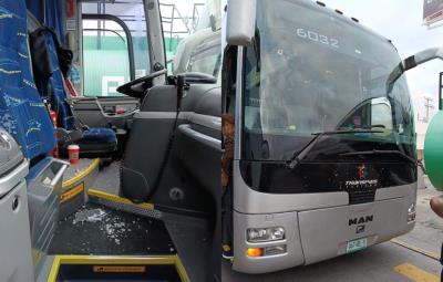 MATAMOROS, Tamaulipas.- Un autobús de un tour de la agencia De Pata de Perro Tours - Matamoros, salió de Matamoros el viernes 18 de octubre y fue atacado a balazos al amanecer del sábado 19 de octubre en San Luis Potosí, cuando se dirigía a Guadalajara.