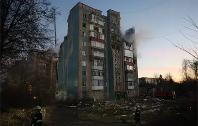 Más de 70 personas resultaron heridas y los equipos de rescate continúan trabajando entre los escombros de dos bloques de apartamentos que fueron impactados durante el bombardeo.
