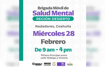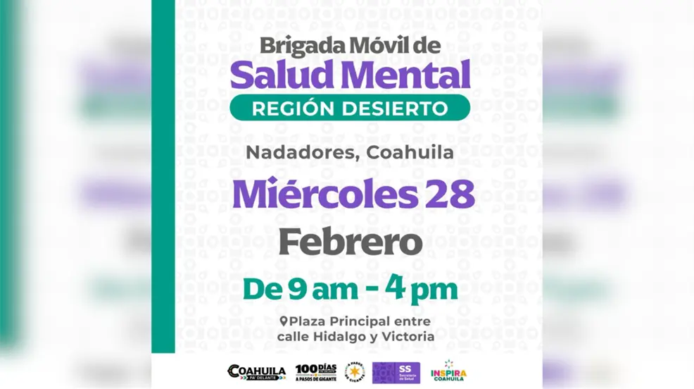 NADADORES, Coahuila. - La Presidencia Municipal de Nadadores, en colaboración con la Jurisdicción 04 de Monclova, ha emitido una invitación general a la comunidad para participar en la gran Brigada de Salud Mental programada para este miércoles 28 de febrero.