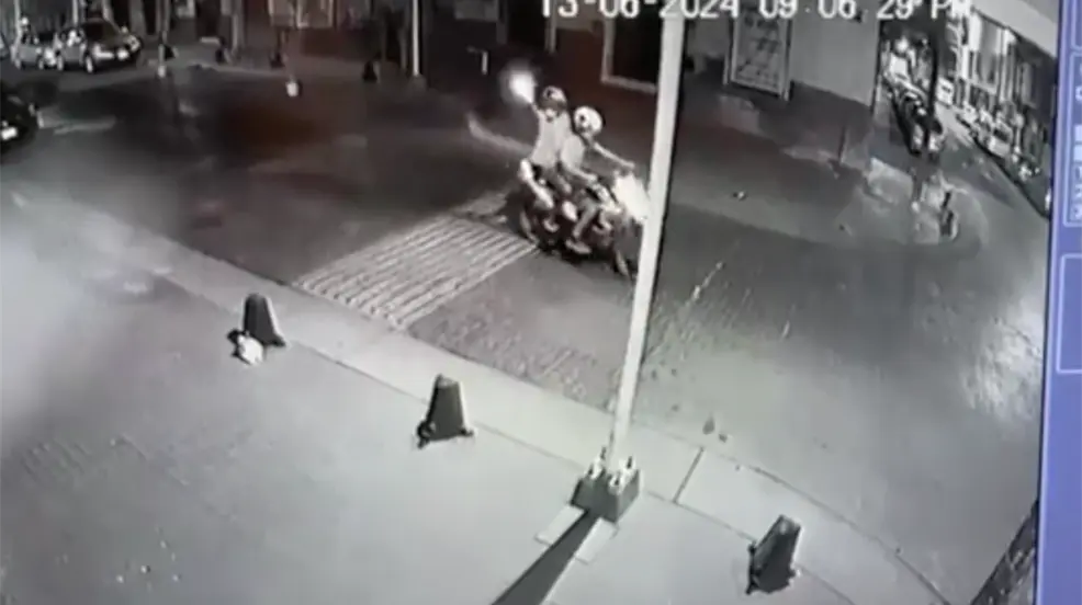 De acuerdo a esas imágenes, dos sujetos abordo de una motocicleta, , cuyos rostros están cubiertos gracias a los cascos que portaban, recorrían la calle Cristóbal Colón, cerca de la zona centro de la capital de Sinaloa. Mientras pasaban frente a la fachada de las instalaciones, uno de ellos detonó su pistola en, al menos, siete ocasiones y luego huyeron de la escena.