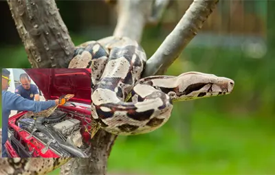 Autoridades rescatan boa constrictora hallada en motor de vehículo en Nayarit