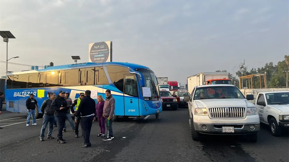 Al momento, suman cuatro horas de bloqueo en la autopista México-Pachuca. Los transportistas de la línea Mexico-Tizayuca piden seguridad y el alto a las extorsiones