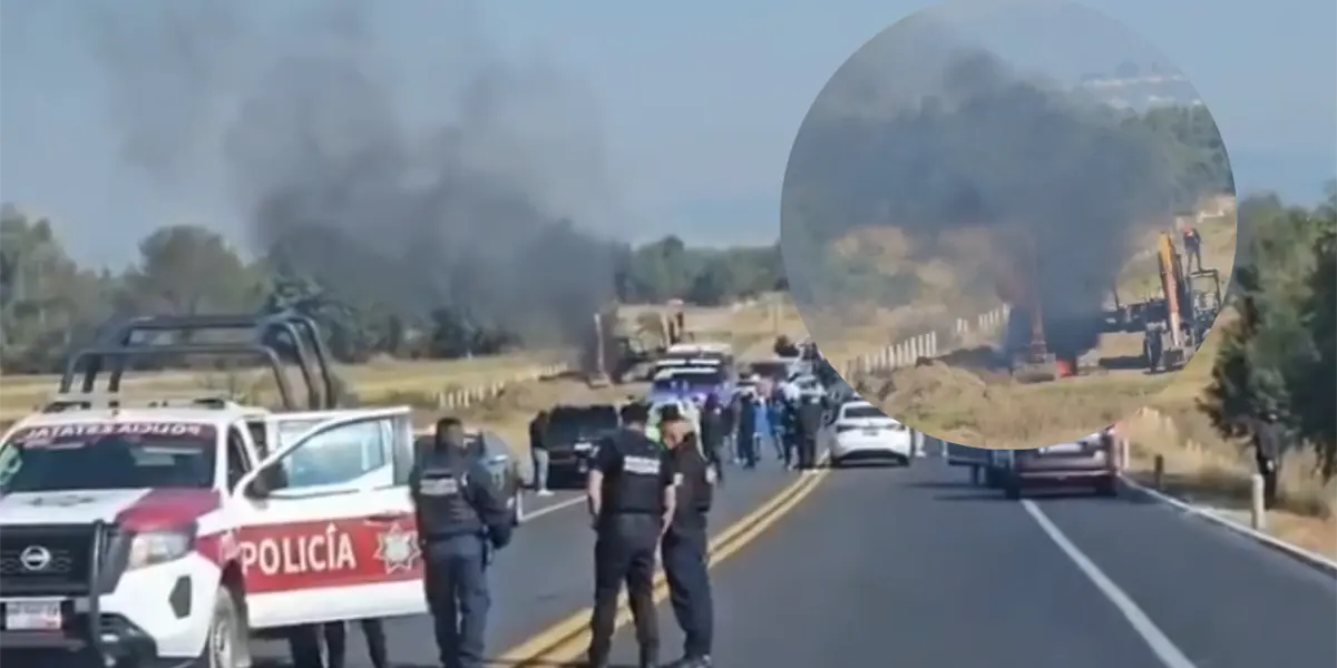 En el tramo de San Francisco Ocotlán, un grupo de encapuchados bloqueó por completo la vía y prendió fuego a maquinaria pesada, dejando la carretera intransitable desde tempranas horas