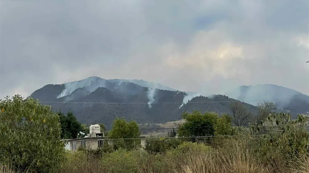 Sigue incendio en el cerro La Verónica en Lerma, ya son seis días
