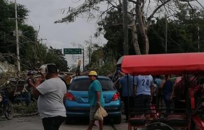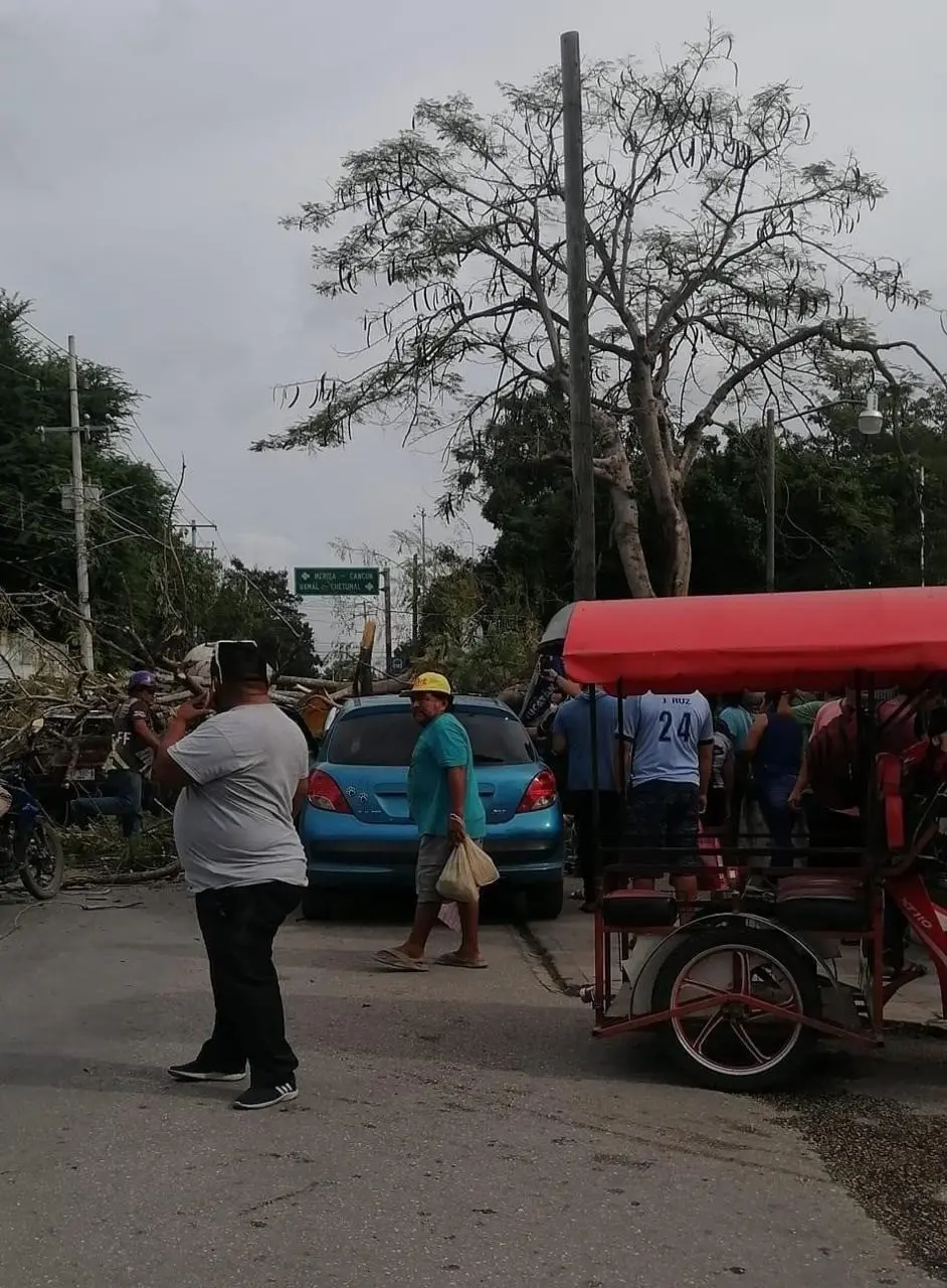 Al rededor de las 13:45 horas, un enorme árbol cayó sobre la vía pública aplastando un auto y un mototaxi que transitaban y algunos vehículos más que se encontraban estacionados sobre la calle 29 x 18 y 20 de la ciudad de Umán. En el mototaxi viajaba una mujer adulta que resultó con heridas serias en el brazo, pero fue atendida de emergencia en el IMSS.