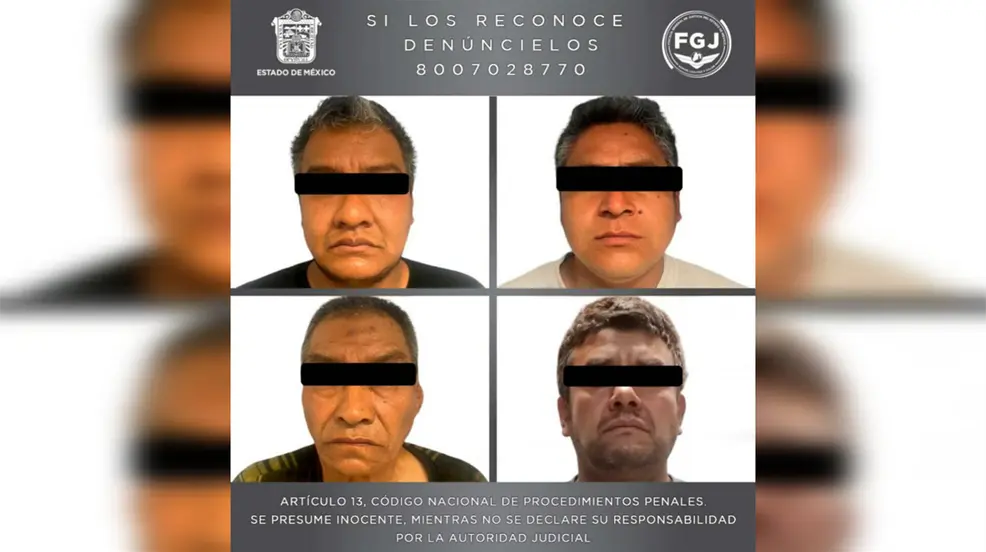Agentes de la Fiscalía General de Justicia del Estado de México (FGJEM), en colaboración con elementos de la Secretaría de la Defensa Nacional (SEDENA), Guardia Nacional (GN) y de la Secretaría de Seguridad estatal (SSEM), llevaron a cabo la detención de Guillermo N, Elías N, Marco Antonio N y Ramón N, quienes son acusados del delito de homicidio calificado.