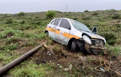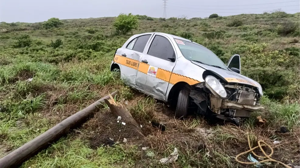 El conductor del Nissan March habilitado como taxi, manifestó haber derrapado mientras guiaba su coche a exceso de velocidad; el pavimento se encontraba mojado al registrarse lluvias en el sur de Tamaulipas.