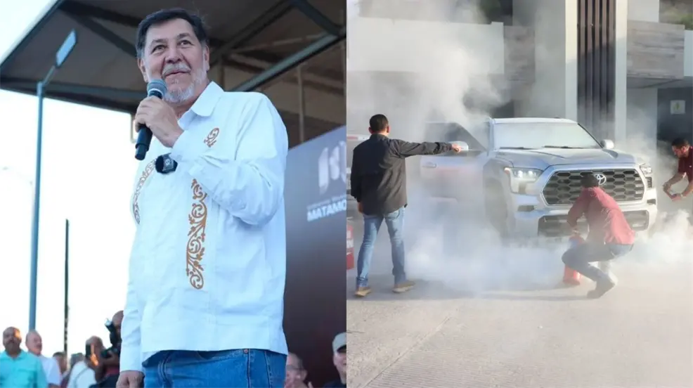 TAMAULIPAS, México.— El presidente de la Mesa Directiva del Senado, Gerardo Fernández Noroña, vivió un momento de tensión cuando la camioneta en la que viajaba se incendió.