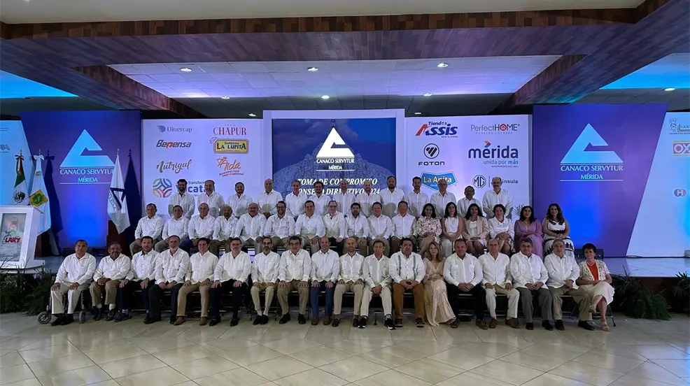 MÉRIDA, Yucatán.- Haciendo un recuento de los logros alcanzados durante el 2023, y con el compromiso de ser impulsores del voto, reiterando su respaldo a los órganos electorales el Consejo Directivo de la Cámara Nacional de Comercio, Servicios y Turismo de Mérida encabezado por su presidente el LAE. Levy Abraham Macari, rindió protesta para el periodo 2024.