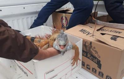 Capturan iguanas en Laguna del Carpintero para protegerlas del frío