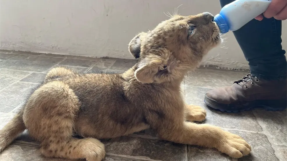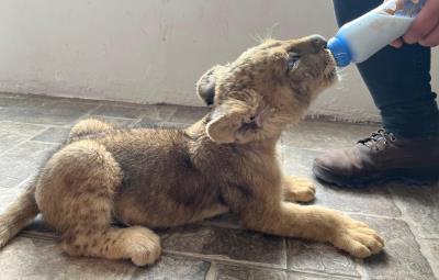 “Carlitos”, leoncito que nació en el Sahuatoba recibe crianza artificial