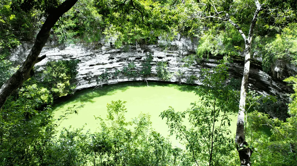 A 300 metros de la pirámide de Kukulcán se encuentra este cuerpo de agua uno de los más importantes para la antigua civilización maya