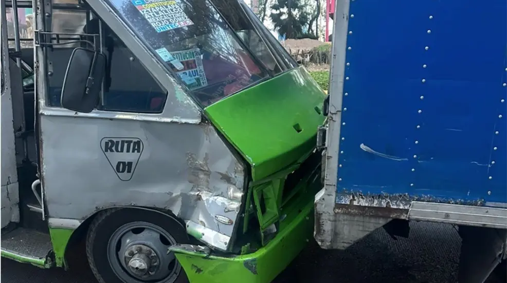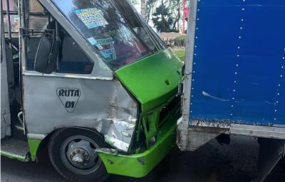 Un microbús de la Ruta 1 chocó contra una camioneta de carga en el cruce del Río Churubusco y Ermita lo que dejó daños materiales; no hay lesionados.