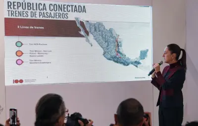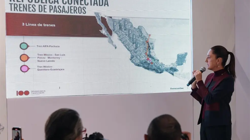 Claudia Sheinbaum presentó su Estrategia Nacional de Relocalización y Desarrollo Regional que incluye tres nuevas rutas del tren de pasajeros, una de ellas llegará al AIFA.