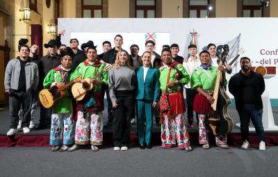 Claudia Sheinbaum honra el himno de los HH a los migrantes en Estados Unidos