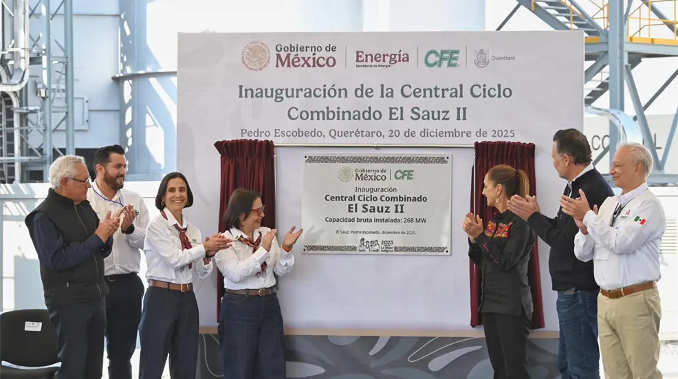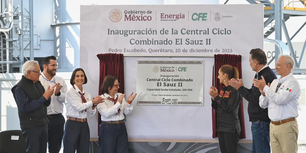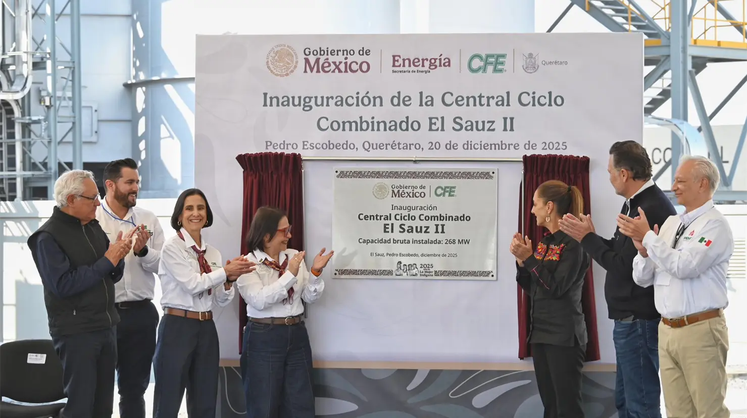 La presidenta Claudia Sheinbaum Pardo inauguró este sábado 20 de diciembre de 2025 la central de ciclo combinado El Sauz II, ubicada en el municipio de Pedro Escobedo, Querétaro, donde destacó el papel de la Comisión Federal de Electricidad (CFE) como eje del sistema energético nacional y reconoció la labor de sus trabajadores.