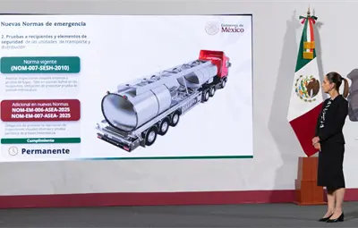 Sheinbaum subrayó que la intención no es solo regular la circulación vial de las pipas, sino reconocerlas como un tema de seguridad industrial. “Lo que se busca es que no tengan fugas, que vayan a una velocidad controlada y que haya vigilancia permanente”, dijo.