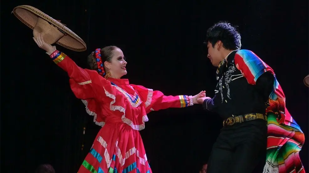 ATIZAPÁN DE ZARAGOZA, Estado de México.- El Teatro Zaragoza fue el escenario de la clausura del festival Aguablanca 2023, con la presentación del espectáculo "Canto y Baile por México", que unió al Coro Branshala y la Compañía Artística de México Cuatro Ciénagas.