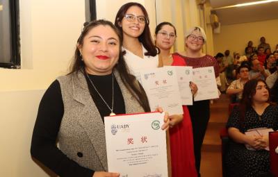 También agradeció la labor de las y los profesores del Instituto Confucio de la UADY, tanto locales como nativos, por su dedicación, cuyo esfuerzo se ha reflejado en los logros obtenidos por sus estudiantes, quienes han alcanzado los primeros lugares a nivel nacional.