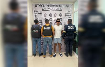 IXTAPALUCA, Estado de México.- Uriel “N”, alias “El Flaco”, fue detenido en Ixtapaluca, Estado de México, luego de que elementos de la Fiscalía General de Justicia del Estado de México le cumplimentaron una orden de aprehensión por homicidio calificado, está acusado de asesinar a balazos a dos adultos y herir a un adolescente, por una deuda económica y viejas rencillas.