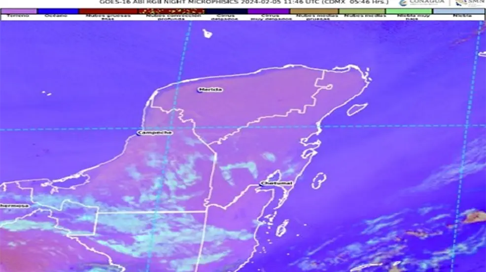 MÉRIDA, Yucatán.- El Servicio Meteorológico Nacional (SMN) y la Comisión Nacional del Agua (Conagua), ha emitido su más reciente pronóstico del tiempo para la Península de Yucatán. Este informe es válido desde las 6:00 horas del lunes 5 de febrero hasta las 6:00 horas del martes 6 de febrero de 2024, marcando el seguimiento al frente frío número 32 y su influencia en la región.