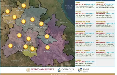 El Estado de México tendrá cielo despejado la mayor parte del día con bruma y ambiente fresco por la mañana. Por la tarde, se espera ambiente cálido y sin lluvia, según el Servicio Meteorológico Nacional.