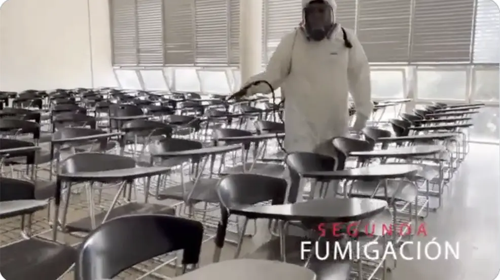 De igual forma, la institución educativa mostró un video donde se muestran las labores de fumigación en las instalaciones universitarias y destacó que concluyó la segunda fumigación a sus instalaciones, ante la presunta presencia de chinches.