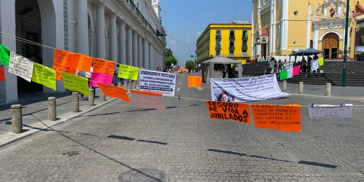 Alrededor de 100 profesores jubilados y pensionados en Veracruz están protestando desde ayer en la calle Enríquez, frente a Palacio de Gobierno, para exigir el pago del Seguro Institucional. Durmieron en plaza Lerdo frente a Palacio de Gobierno.