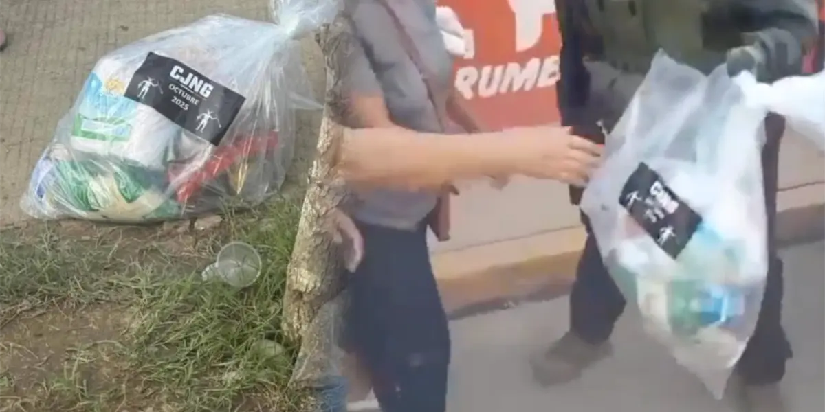 El video termina cuando concluyen de entregar las despensas, momento en el que la persona que graba ingresa a un automóvil de color azul, distinto a la camioneta en las que los distribuyeron. Además, y gracias a imágenes que fueron difundidas, las bolsas, además de contar con el "CJNG", decían "OCTUBRE 2025", contaba dos diablos con tridentes, además que en su interior tenía papel de baño, azúcar, una lata y otros productos.