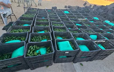 Decomisan más de una tonelada de droga oculta en cargamento de chiles en Sonora. Foto: Defensa