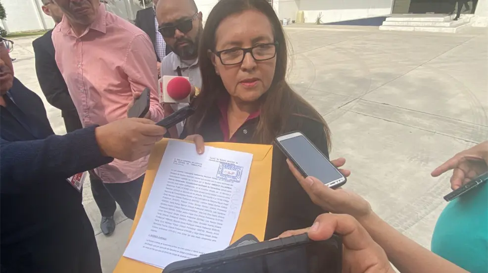 VICTORIA, Tamaulipas.- La directora de Asuntos Notariales del Gobierno del Estado, Guillermina Reynoso Ochoa, acudió a la Fiscalía General de Justicia de Tamaulipas (FGJT) a presentar una denuncia de hechos con apariencia de delito de falsedad de documentos notariales.
